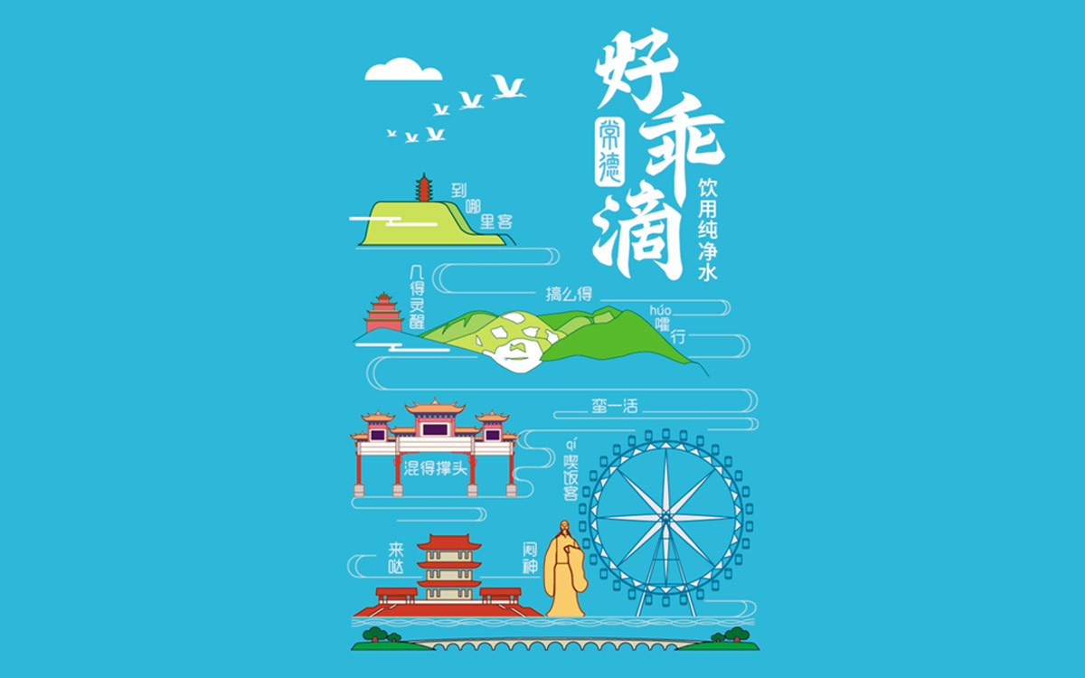 項目背景: 在常德旅游產業大發展的環境下,亟需具有文化性、傳播性、低成本的文創產品作為旅游宣傳載體,而小瓶裝純凈水,可以很好的起到常德旅游形象宣傳的目的,在水包裝上挖掘地域文化,用小瓶裝水傳播常德旅游,且成本非常低廉。 如何在小瓶裝水的包裝上體現常德旅游特色和常德地域文化,這是一個非常大的挑戰。且瓶裝水包裝幅面有限,在極小的幅面內選擇怎樣的元素體現常德旅游和地方文化,如何挖掘、篩選這些元素,需要深入考察和研究地方文化。 中世銳意設計將常德旅游景點的代表元素做了篩選,并用當下流行、時尚的插畫手法繪制出象征圖形,形成了非常直觀的旅游資產的展現。 并注意到常德方言是一個非常有趣的地方語言文化,原滋原味的常德方言隨著社會經濟的發展逐漸被輕視和消亡,而作為極具地方特色的常德方言,是地方文化的無形資產。于是,中世銳意設計深挖原滋原味常德方言,讓一句句鮮活的方言短語與美麗景色插畫相結合,形成旅游資產+地域文化的綜合展現。 當這款“好乖滴常德” 瓶裝水出現在常德大街小巷時,對于本地人來說,熟悉的常德景色與家鄉話是那么親切,自豪感油然而生;對于外地游客,瓶裝水上的美麗景色或許會成為他們下一站旅行的目的地,而水瓶上有趣、陌生的地方方言,會成為他們來到常德之后輕松掌握常德話的啟蒙工具,輕松學上兩句常德話,將成為愉快的交流場景。