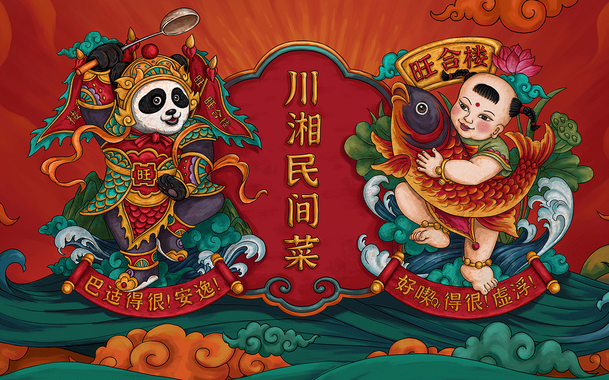 四川傳統元素+湖南傳統元素+旺文化=新的年畫門神IP