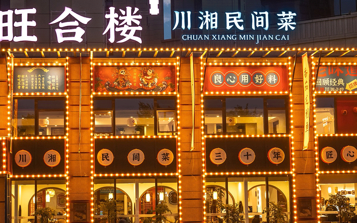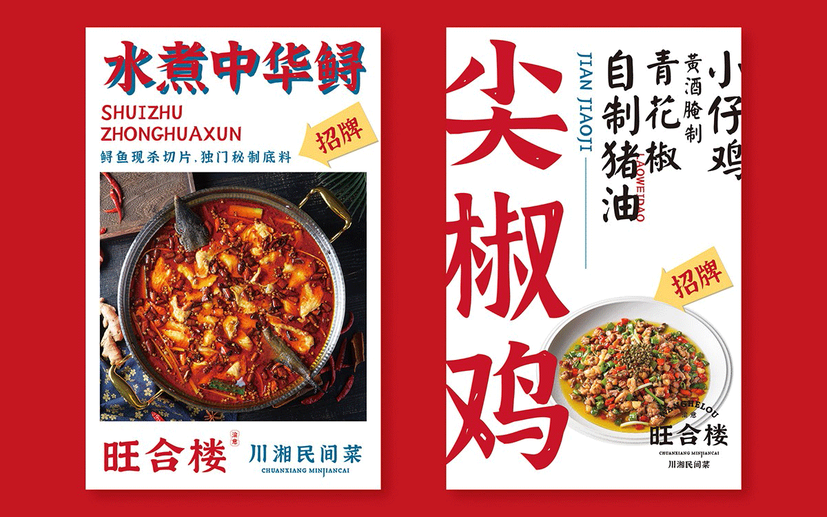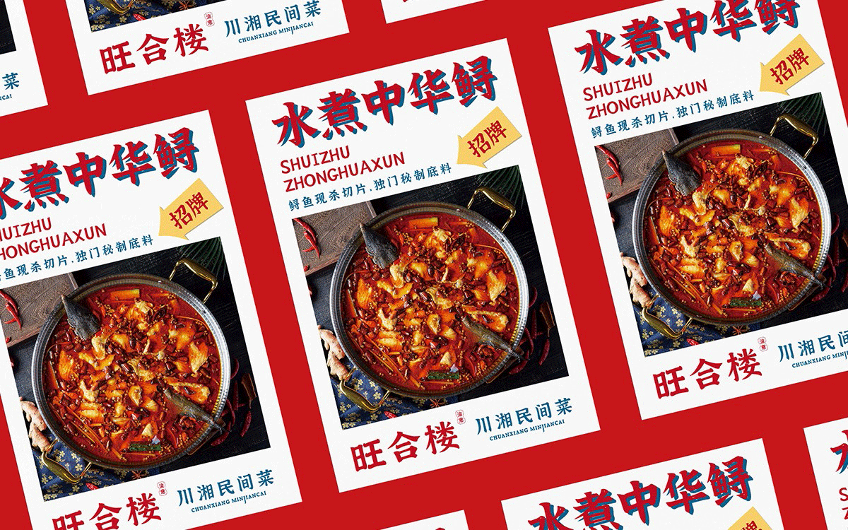 旺合樓,渝意餐飲推出又一重要品牌,中餐品類蓄勢三十年的他們,在川菜系和湘菜系都有著執著的鉆研及強大的菜品研發能力。而餐飲的品牌視覺與品牌實